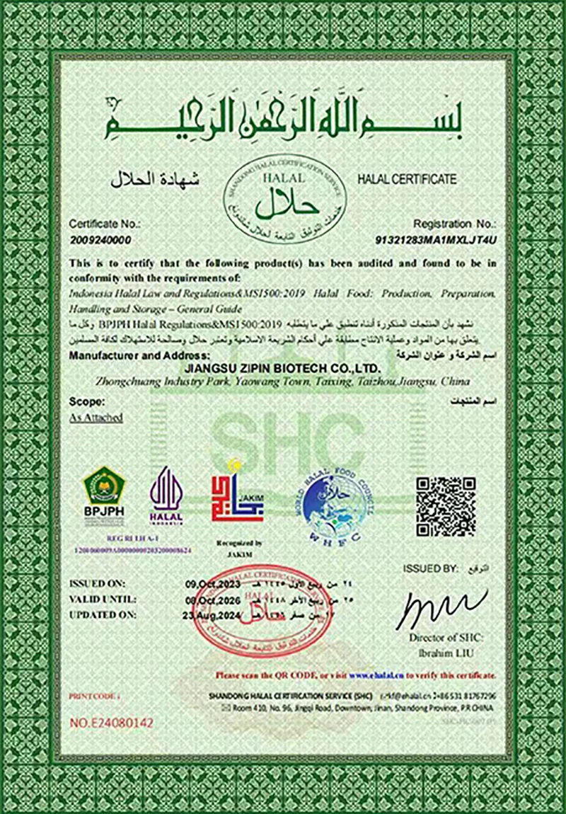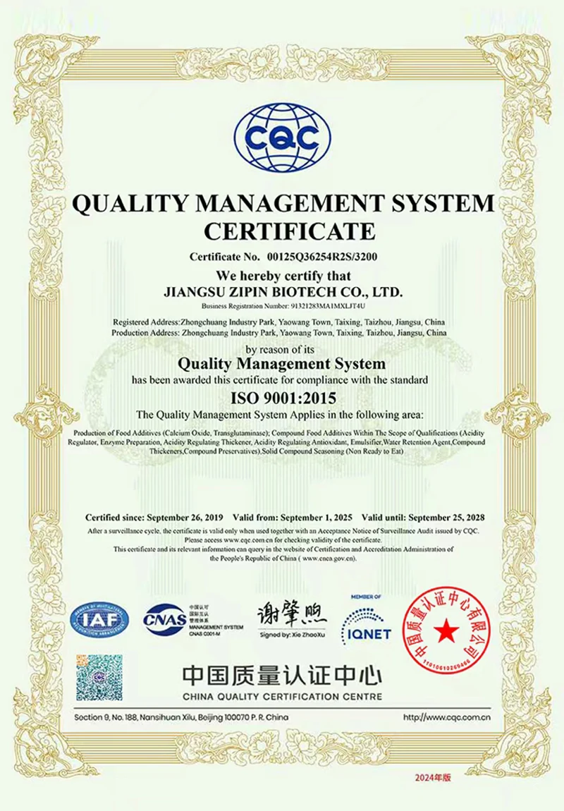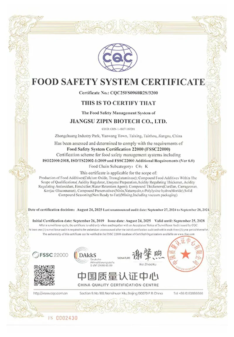 جيانغسو Zipin Biotech Co.,Ltd. تأسست في عام 2016، وتغطي مساحة 20,000 متر مربع. كمؤسسة خاصة حديثة، نحن الآن منخرطون بشكل رئيسي في البحث والتطوير وإنتاج وبيع المضافات الغذائية. منتجاتنا الرئيسية هيترانسجلوتاميناز, كوردلان, ε-بوليليسينوالنيسين والناتاميسين والمضافات الغذائية الأخرى.