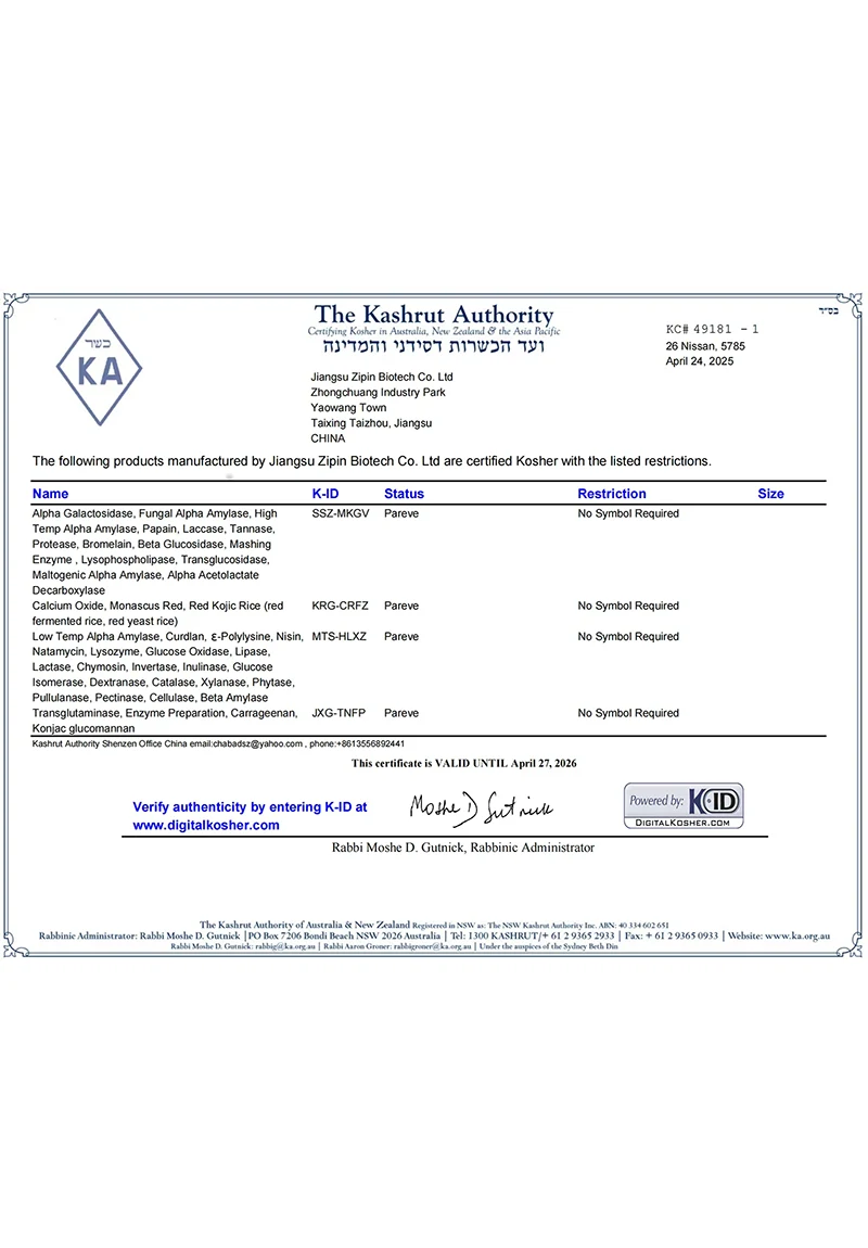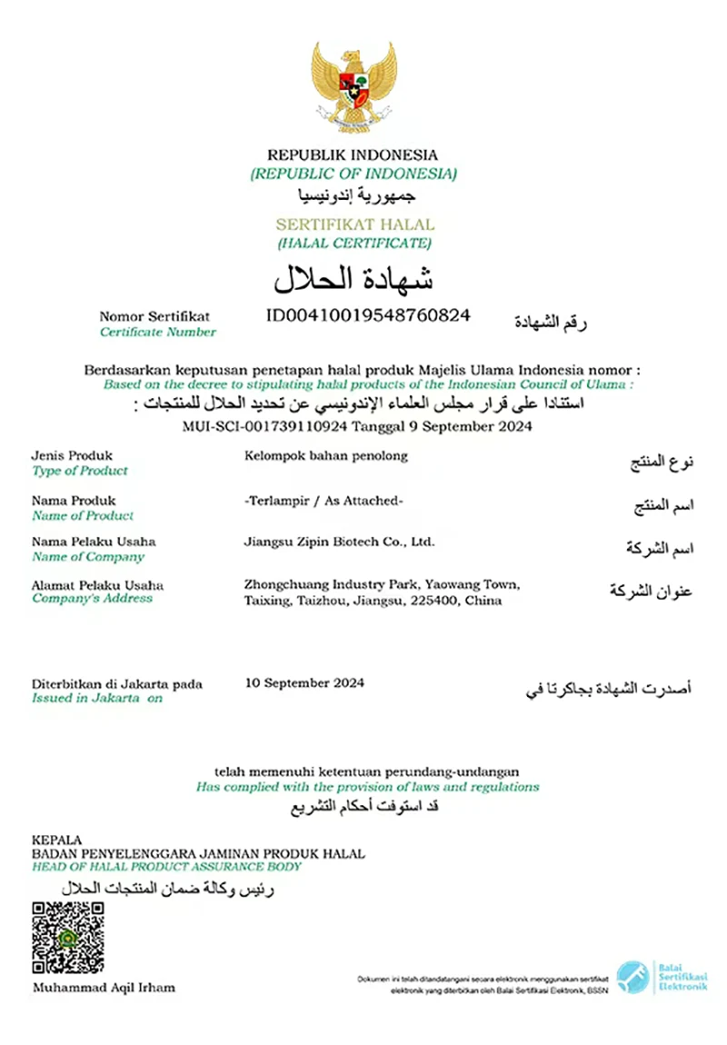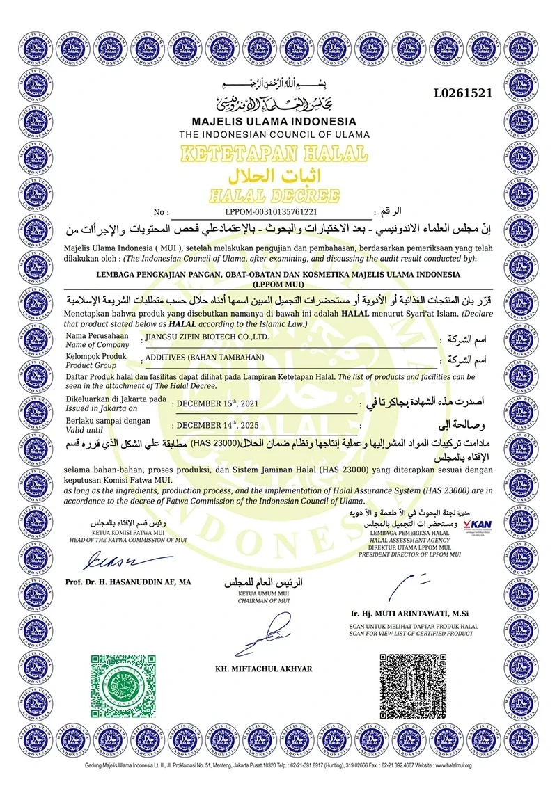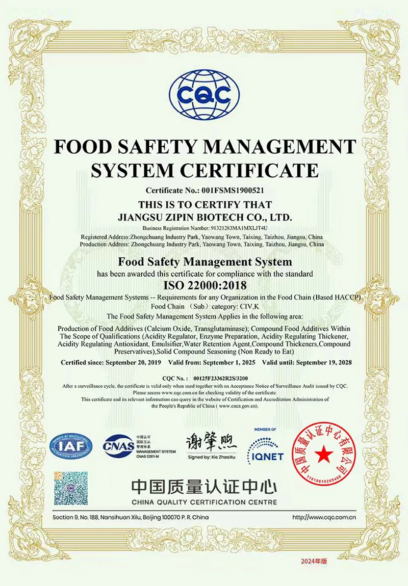جيانغسو Zipin Biotech Co.,Ltd. تأسست في عام 2016، وتغطي مساحة 20,000 متر مربع. كمؤسسة خاصة حديثة، نحن الآن منخرطون بشكل رئيسي في البحث والتطوير وإنتاج وبيع المضافات الغذائية. منتجاتنا الرئيسية هيترانسجلوتاميناز, كوردلان, ε-بوليليسينوالنيسين والناتاميسين والمضافات الغذائية الأخرى.